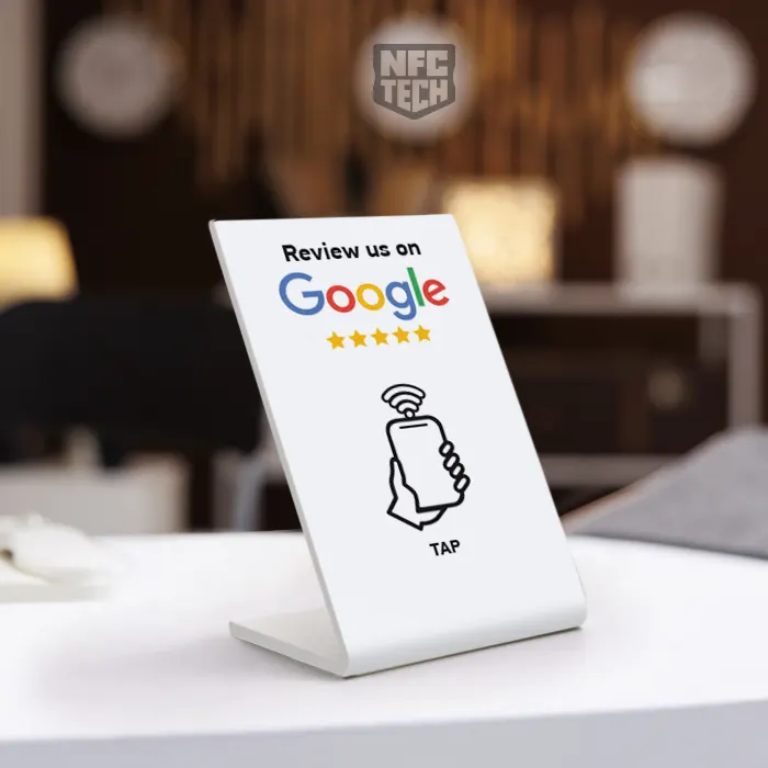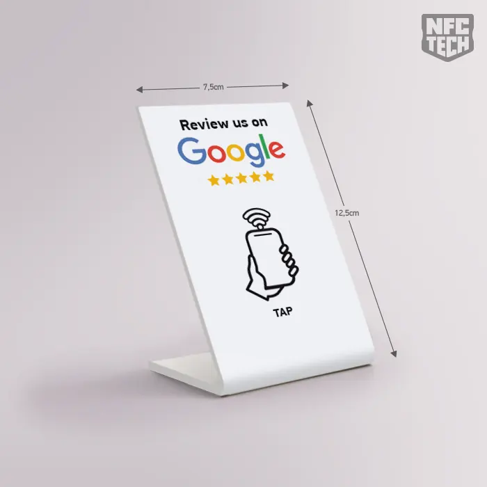 Το Google Reviews Stand NFC μικρό χωρίς Λογότυπο και QRcode είναι η ιδανική επιλογή για επιχειρήσεις που θέλουν να ενσωματώσουν την τεχνολογία NFC με έναν οικονομικό και αποτελεσματικό τρόπο.